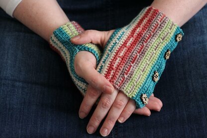A moment of peace and tranquility is made all the sweeter with a delicate pair of fingerless mitts. Easy colorwork and a button closure provide just the right combination of style and sensibility. Fingering weight yarn makes them light and comfortable to wear. The one-size pattern has notes on modifying for a custom fit.