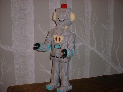Knit this retro robot to delight the kiddie in your life! He is a fun little chap, knitted in blocks then stuffed and joined together. This pattern uses double knitting yarn, and apart from the main grey colour, you could use any leftover yarns for all the detailing, making him very affordable to make!