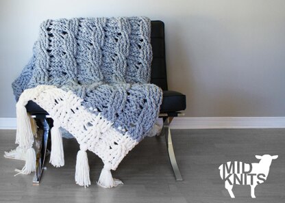 This symmetrical Super Chunky Reversible Cable throw, blanket or rug has matching twisted cables on both the front and back, and a tassel border. It is crocheted using multiple strands of acrylic yarn to create a modern over-sized blanket that is easily sizeable. The written instructions also include photos for pattern clarification making it easy to follow.