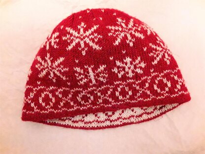 Soft-and-fluffy looking snowflakes (four different types) drift above a subtle border pattern of X’s and O’s - my interpretation of what i always think of as “snowflake kisses”. Those minutes when it first starts to snow, and for a moment you can catch and admire the perfect little flakes falling on your hat and gloves before they fade away into nothing… sigh! Makes me want to put on my coat and run outside like a kid on a snow day again! Of all my designs so far, this one was, without a doubt, the most satisfying one I have ever completed :)