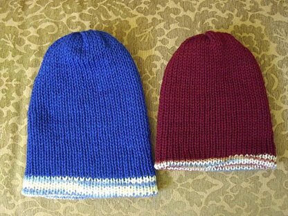The smaller size can be worn as a watch cap for a child or as a slouch hat for an adult.