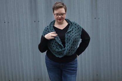 Create with the magic of a mobius strip! Very fun piece to stitch and watch magically grow. The Reyelle wrap is a dual-function accessory piece that will span the seasons. It can be worn around the shoulders as a sweet accent for a light warming. Or wrap double around the neck to buffer winter's wind.