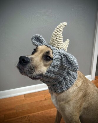 Make your own adorable and soft Dog Rhino Snood! Purchase to download the PDF pattern with photo assembly instructions to crochet your dog snood!