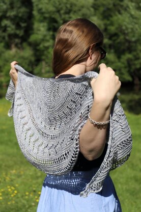 Rhubarb Pie is a beautiful crescent shaped shawl. The eyelet arrows and thin mesh stripes create lovely layers and make the shawl light and flowy. And there’s no purling!