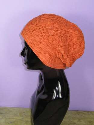 This is my Rib Band Cable Slouch Hat. This wonderful hat is quick and easy to make. The knitting pattern provides full instructions for 4 sizes XS (ban), S (child) M (teen / small woman) & L (adult) and there are photos to help you with the simple makeup. Its worked flat on 4 mm needles in any dk yarn of your choice. This pattern is available to buy here.
