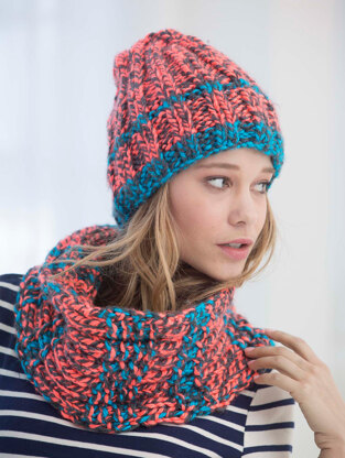 Ribbed Slouchy Hat And Cowl in Lion Brand Hometown USA Multi - L40020