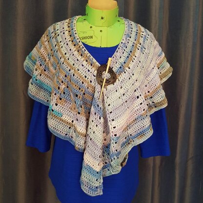 This is a fairly simple curved wrap, made up of a two-row repeat, including increases which create the curve. Beginner crocheters could manage this one - knowledge of basic stitches, plus front - and back post double crochet is required.