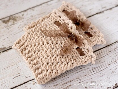 Feminine, lacy, and elegant, with a touch of country thrown in, these boot cuffs are simple to make, but oh so cute! They work up quickly, which make them a great last minute gift idea, and they don’t use a whole lot of yarn. They are also easy to adjust to any leg size. See pattern notes.