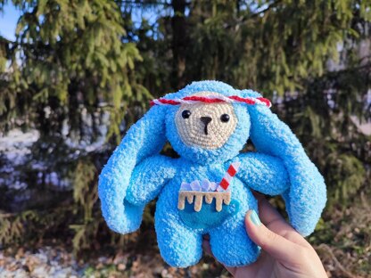 This is pattern for fluffy winter bunny - Richie. Richie the Hot Chocolate Bunny is cuddly and soft. He likes to drink hot chocolate when its cold outside. You can choose your own theme for the bunny as well.