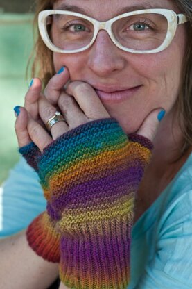 Yarn: Approximately 160 yards of light fingering-weight yarn. Sample shown in Crystal Palace Mini Mochi yarn in color 105 Tapestry Rainbow. Needles: US 2 (3 mm) needle for knitting in the round. You can use DPNs, 2 circulars, or 1 circular, whatever your preferred method may be. Notions: Tapestry needle, stitch markers. Gauge: 7.5 sts and 10 rounds per 1” in stockinette stitch. Skill level: Advanced beginner. Finished measurements: 7" long, 7" around (3.5" across when laid flat) at base of thumb. One size fits most.