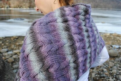 This elegant shawl filled with ripples of cables all over was inspired by the waves of sand dunes and nature carved stones, and my love for interesting cables. The rectangular shape allows you to wrap the shawl loosely or tighter around your body. The pattern of intertwined cables is knitted flat, with I-cord edge which gives the shawl a nice finished look. Blocked shawl measures 16.5" (42cm) and 50" (127cm). Gauge: 18st & 25 rows in stockinette 28sts & 27 rows in cable pattern