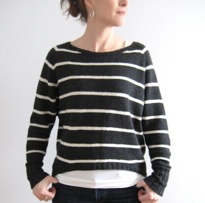 Robin is available in both English and French. Worked from the top-down seamlessly and in one piece, with fun stripes and a modern asymetrical hem and dolman sleeves, I suggest you choose a size with lots of positive ease for maximum comfort.