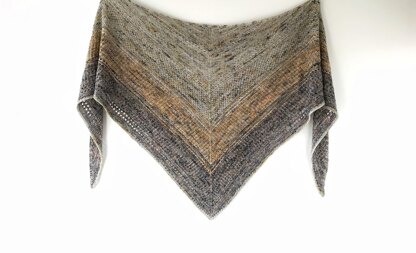 PATTERN INFO Rocas is worked flat from the top down, starting with a garter tab. Stitches are increased every RS row to create a triangular shawl. The pattern is fully written out with stitch counts throughout the entire shawl.