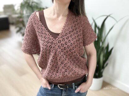 This delightful no-sew floral tee draws inspiration from the Rock Clematis, a native beauty of the Rocky Mountains. It features wavy stitches that twirl like climbing vines, paired with mesh that highlights star-shaped blossoms. Find your ideal fit with sizes ranging from XS to 5XL to create a comfy, loose summer tee that fits your measurements like a dream! The instructions are written using standard American terms, along with crochet diagrams, step-by-step photos, and a conversion chart to UK terms. This pattern is professionally written, tested and tech-edited to make your crafting experience a breeze.