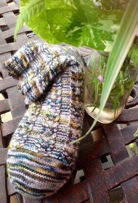 You can stop petting that variegated yarn and knit a sock. :) The "Claw Cable" makes variegated or striped yarns share the stage. Sock is constructed toe-up with cables spanning instep and leg. It has a short row heel with mini gusset and mini heel flap. Pattern options include tapered or rounded toe, generic or calculated foot length, and Russian or picot bind off.