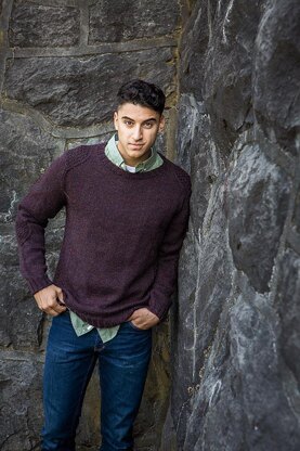 The Rockland Sweater is knit in the round from the bottom up, with set-in sleeves and a wide crew collar.