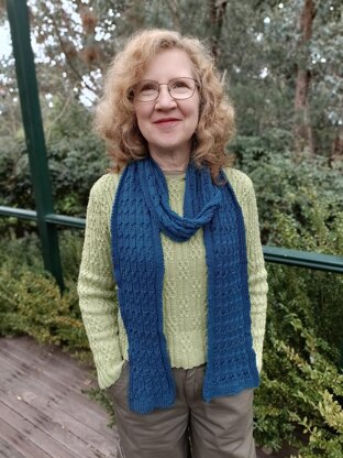 The Rocky Rivulets Scarf is a beautifully soft, elegant, merino scarf in a cables and lace stitch.