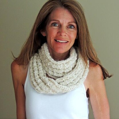 This is a reversible cowl with an irresistibly squishy texture! It's knit back and forth and seamed. It can also be left unseamed and worn as a scarf. Both the length and width are easily adjustable.