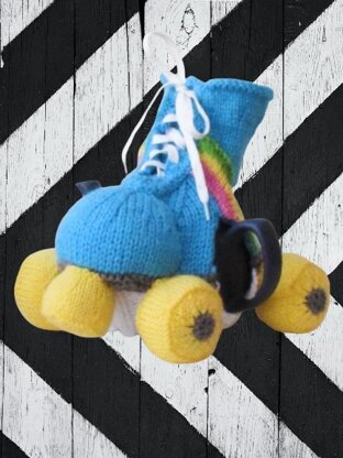 Inspired by the vibrant spirit of the '80s, this groovy tea cosy captures the roller disco delight. The main part of the cosy forms the bulk, while the roller boot toe and ankle are knitted separately and applied.