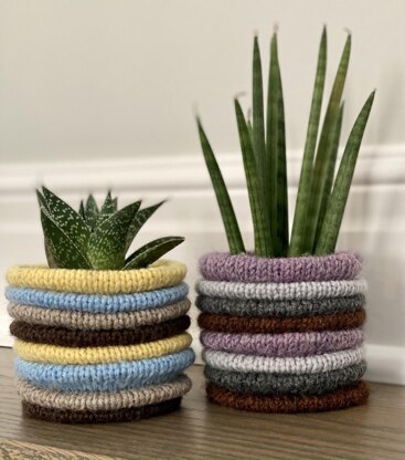 - The pattern requires scrap yarn in 5g quantities for each welt plus 5g of yarn for the base. As shown, 45g of worsted weight yarn was used.