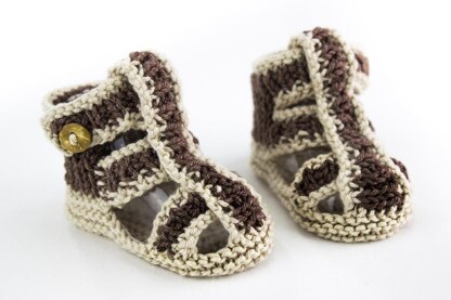 Here is a pattern for an adorable pair of knit Roman sandals in two colours. Treat your special young athlete to a pair of super comfy cotton summer sandals!