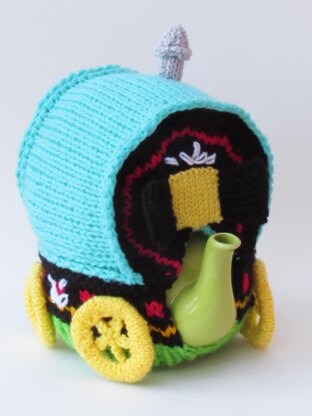 The Romany Gypsy Caravan Tea Cosy knitting pattern from TeaCosyFolk is a delightful project to make a spectacular tea cosy of an old travllers ornate caravan.