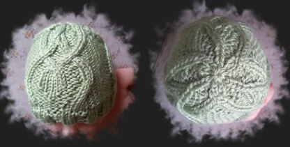 Roots is a cable pattern hat that resembles tree roots growing down in the ground. The hat is worked in the round on dpn