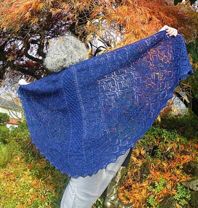 A tale of loves lost and found again, mistaken identities, royalty hidden away in the forest... and one of the greatest heroines put to paper. This is Shakespeare's comedy, As You Like It. In this garment, I tried to capture Rosalind's trials and tribulations as she strives to rescue her kingly father and gain the love of her life, all the while disguised as a boy. The yarn is humble enough, a fingering weight shetland, but the design is complex and rich, featuring cables, lace, beads, and a labyrinthine center panel. I hope you will agree that although the "plot" may go far afield, all comes right in the end, and with a regal beaded flourish too!