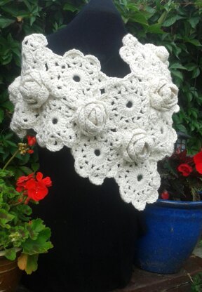 This is a pattern for a dramatic chunky crochet wrap guaranteed to keep you warn this winter. Wrap is made working flower motifs joining as you go to form one piece and adding roses for a 3D look.
