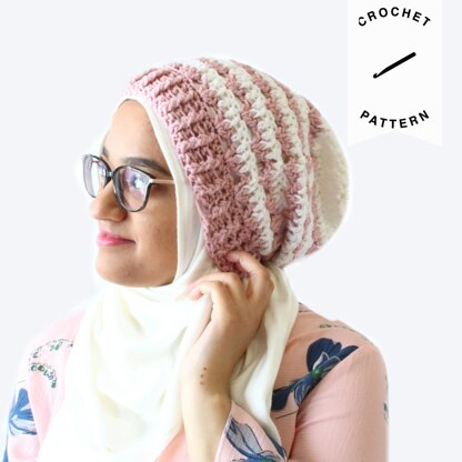 The Rosebud Beanie is worked much more loosely than some of my other beanie patterns and with a more open stitch. Normally, I want the stitch close together with few gaps so they keep you super warm, but with this crochet slouchy beanie, I tried something different. The looser stitch pattern makes the beanie slouch more easily and it makes the hat a little breezier and perfect for Spring. And how pretty is this dusty pink color next to the white? I feel like it pops more than if it were all pink! The pattern is available as a downloadable PDF.