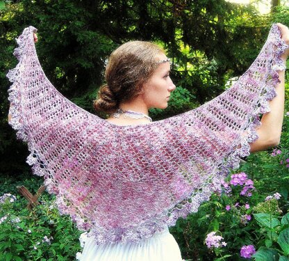 When I raided my stash for “Lady Mary’s Lace,” I came across those two skeins of Bittersweet Woolery’s “Guilty Pleasures Sock yarn” - one skein of “Orchid”, one skein of “Little Miss.” Purchased two years ago at Rhinebeck and hoarded ever since, waiting for just the right shawl… They were not what I wanted for Lady Mary, but somehow I could not put them away. As I worked on Lady Mary, they sat next to my chair, and occasionally I would glance at them, and wonder “what would they be perfect for?” Sometimes it felt like they were watching me as I crocheted…