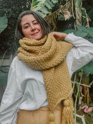 Required Materials: Pattern includes links to all required materials by the pattern and suggested yarn. Rosewood Scarf is made using Bulky weight yarn 100% wool