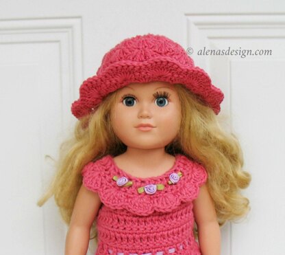 This Rosie Sun Hat features a shell pattern. Crochet this beautiful hat for your favorite doll.
