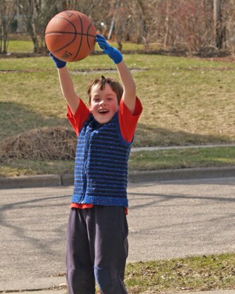 Sporty zip front vest. Recommended yarn is a machine wash and dry cotton/acrylic blend. Shrinks about 10% so plan ahead!