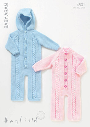 Round Neck and Hooded All-In-One in Hayfield Baby Aran - 4501 - Downloadable PDF