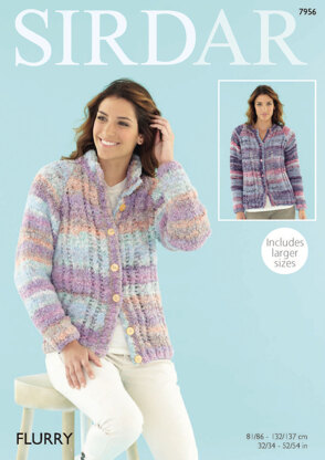 Round Neck and Stand Up Collar Cardigans in Sirdar Flurry - 7956 - Downloadable PDF est un modèle de Tricot Intermédiaire par Sirdar, disponible au format PDF téléchargeable et comprend des instructions en Anglais. Super amusant à réaliser, ce modèle pourrait être votre prochaine œuvre d'art !