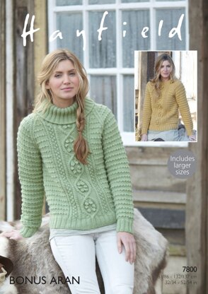 Round Neck and Stand Up Neck Sweaters in Hayfield Bonus Aran - 7800- Downloadable PDF