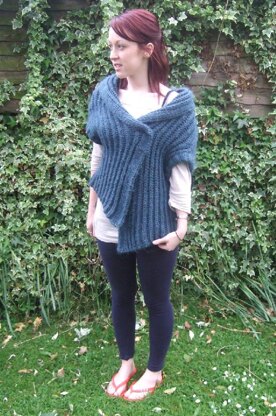 An easy to knit chunky, slouchy cardigan that can be made to any size. Constructed in loose rib in just two pieces on 9mm needles, then seamed and finished using 6mm DPNs around armholes.