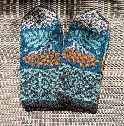 The pattern is created for a thicker yarn. I recommend to use at least sport-weight. The sample pairs for this pattern were all knitted on Addi Turbo circulars (US size zero) with sport weight Regia Tweed, and fit small to medium. The dimensions are 9 cm wide and 24 cm tall. The gauge is approximately 30 stitches X 30 rows in 10 cm. The PDF also includes instructions for a fingerless mitts.