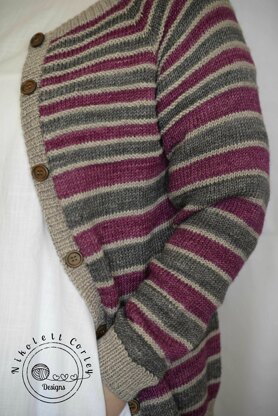 A timeless, top-down cardigan, using 3 different colors, seamlessly, with raglan sleeves. The neckband, botton band and wrist bands are worked as you go, the front button bands are added at the end, knitted on the side of the rows. The cardigan is written to be worked back and forth in rows, the body and sleeves are divided after the yoke shaping. The body is worked back and forth in rows, the sleeves are worked in the round. The colour work is the easiest possible type - you basically knit stripes The cardigan is suitable for new knitters and as beginner’s projects.