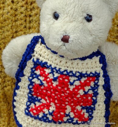 Did you wake up before dawn to watch the Duke and Duchess of Cambridge say “I do”? Have you subscribed to the official royal twitter feed so you are notified as soon as baby Cambridge is born? To keep your hands busy while you wait for the royal announcement, I present the Union Jack Bib! Keep your favorite baby spill-proof and show off your Anglophilia. The bib comes in one size, and measures approximately 8 inches wide at the widest point and 6 inches tall. The strings are about 7 inches long, but the length can be customized. The flag is cross-stitched on after you have finished.