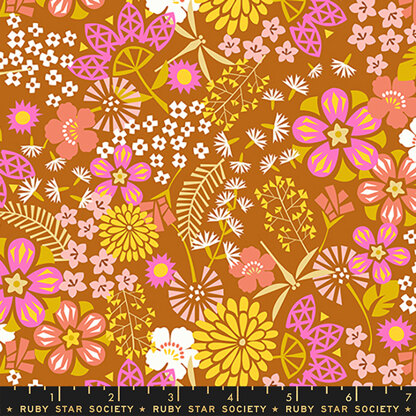 In Koi Pond, Rashida revisited some of the art from early in her design career, and recreated it in new colors with a more experienced eye. She wanted the color palette to feel like a sunny day at the lake - lots of warm peaches, yellows, and toffees, with pops of deeper teals.