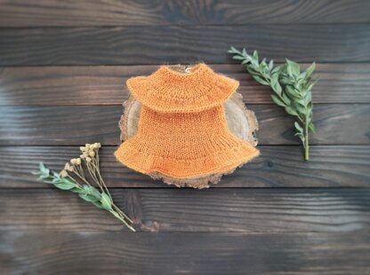 Video support has: how to knit the selected rows correctly; how to avoid the hole between the first and the last sts while casting off a round; how to form the ruffle; how to hide all the threads tails after knitting; how to make loops for the buttons.