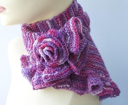 An easy versatile ruffle scarf pattern with a little knit scarf pin pattern included.