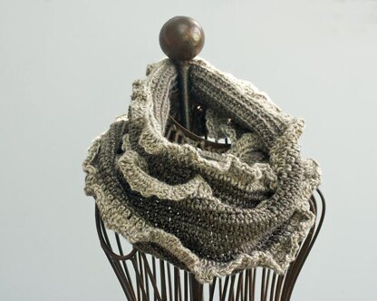 The cowl is crocheted in the round with a ruffle along the edges. It is a flexible pattern that can be made in a variety of yarns and sizes. Its easy to change the size to make a little neck warmer or a big thick scarf. Adaptable to any worsted weight yarn. The pattern is suitable for a beginner, its an easy pattern that works up quickly. The cowl is crocheted using an extended stitch, easy to learn and a useful stitch to know