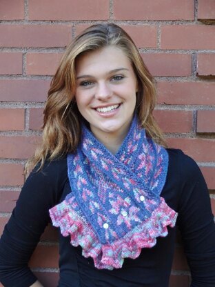 The Ruffle Kerfuffle Scarf features a steek (area of waste stitches) that is cut, and then finished with a ruffle. (Fear not; instructions included.) This scarf is knit in the round, and is a good introduction to stranded colorwork knitting; only 2 colors are used per round. If you choose a variegated yarn for the contrast color, you’ll look like a color genius, but all the work was done for you by the dyer!