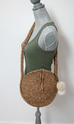 Modern circle crossbody bag with closure and removable pom pom key ring. Includes a full video tutorial on our YouTube channel for child size. Pattern includes 2 sizes, child and adult.