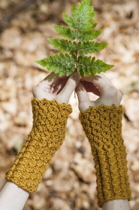 The glow of sunlit autumn leaves inspired these golden cuffs – a quick yet interesting knit, perfect for this restless season. “Ruska” is the Finnish word for that time of the year when the leaves change colours, while “valo” means light.