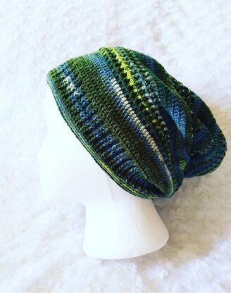 A classic slouchy hat never goes out of style. And, what better way to get the characteristic flexibilty and a fabric-like movement to your hat than to crochet one with sock yarn?
