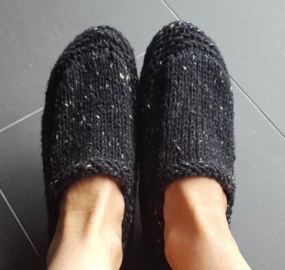 These thick moccasin type Slippers are quick to knit and will keep your toes warm and toasty. Worked in easy garter stitch and stocking stitch, the pattern includes six sizes, so you can knit a pair for everyone in the family!